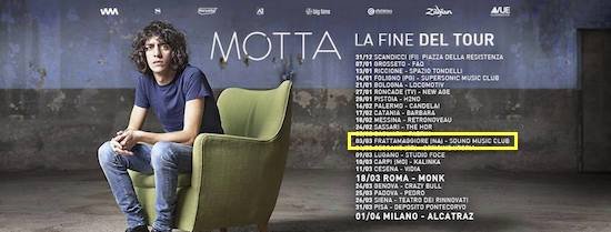 Motta è cantante, polistrumentista e autore di testi. Nasce artisticamente nel 2006, a soli venti anni, con i Criminal Jokers, band pisana con cui incide due dischi, “This was supposed to be the future” (2009) e “Bestie” (2012). In questo periodo compie anche altre importanti esperienze musicali: mette a frutto la propria versatilità collaborando con NADA (con cui suona basso, tastiere chitarra e cori), PAN DEL DIAVOLO (batteria), ZEN CIRCUS (tecnico del suono per il tour di “Andate tutti affanculo”) e GIOVANNI TRUPPI (chitarra e tastiera). Nel 2013 studia Composizione per film presso il Centro Sperimentale di Cinematografia di Roma sotto la direzione artistica di Ludovic Bource (premio Oscar nel 2012 per la colonna sonora di The Artist) e compone le colonne sonore di “Pororoca” (2013) di Martina Di Tommaso, “DOLLHOUSE” (2014, Canada) di Edward Balli, “THE TELL TALE HEART” (2014, Inghilterra) di Andy Kelleher e del documentario di Simone Manetti “Good bye darlin i’m off to fight”, in uscita nel 2016. “LA FINE DEI VENT’ANNI” è il suo primo disco solista, di cui compone testi, musiche ed arrangiamenti. Alcuni dei brani sono scritti a quattro mani con Riccardo Sinigallia, produttore dell’album.